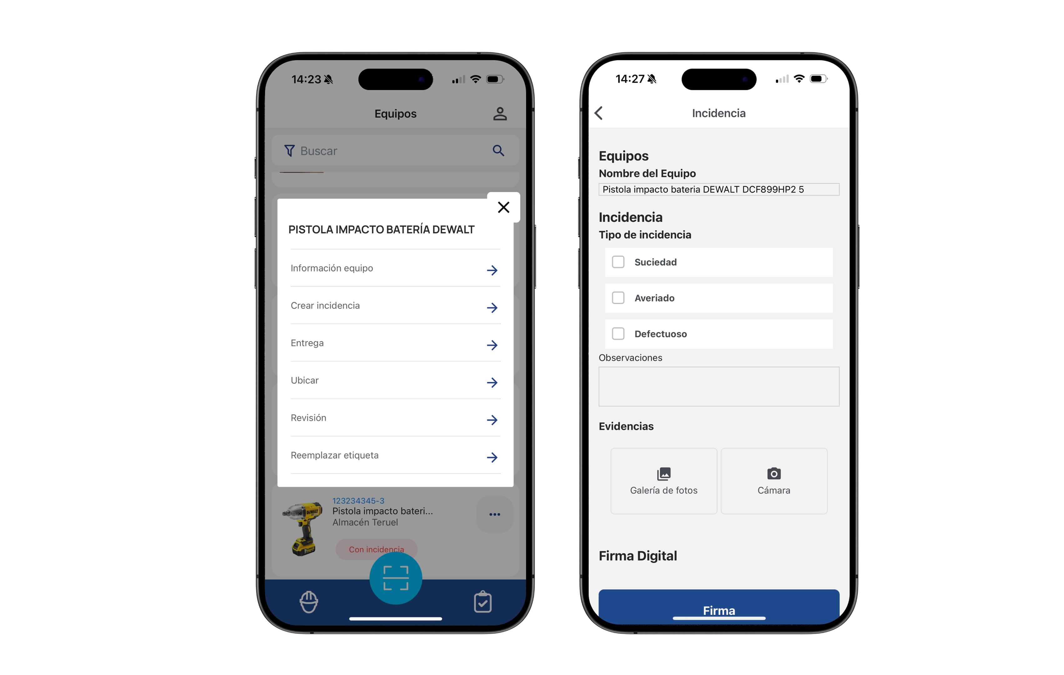Cada entrega, revisión o devolución queda registrada con firma digital del trabajador o usuario, asegurando la validez legal y la trazabilidad de todas las operaciones. Transparencia y responsabilidad documentada en cada paso.