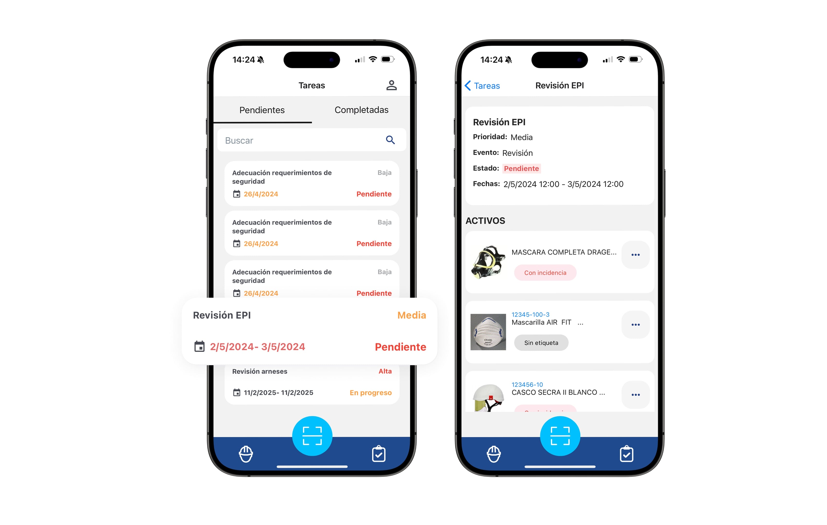 Centraliza toda la gestión del día a día de tus EPIs con trazabilidad total y avisos automáticos de revisión. Cumple con las exigencias de la legislación en prevención de riesgos laborales y mantén tu empresa siempre preparada ante cualquier inspección.